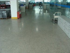 | ④ 保 护 剂: | 硬化剂施工完 24 小时后,进行保护剂的施工。在把地面尘土清理干净后,用喷雾器将保护剂均匀喷洒于地面上,在喷洒同时用 100% 涤纶拖把紧跟着拖均匀,并以高速抛光机抛光至表面光滑,发亮。 |